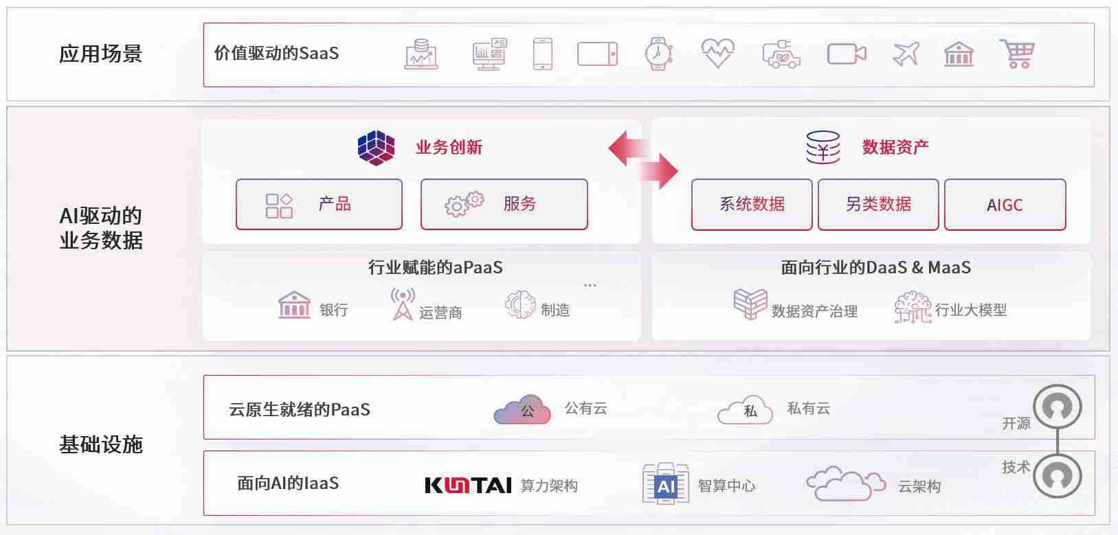 数字时代,,,,围绕企业数字化转型的关键要素,,,亚米游戏数码开创性的提出数云融合战略和技术体系框架,,着力在云原生、、、、数字原生、、、AI原生和信创产业上架构产品和服务能力,,,,为处在不同数字化转型阶段的快消零售、、、汽车、、金融、、、医疗、、政企、、教育、、、运营商等行业客户提供泛在的敏捷IT能力和融合的数据驱动能力,,构建跨界融合创新的数字业务场景和新业务模式,,,,助力企业级客户建立面向未来的核心能力和竞争优势,,全面推动社会的数字化、、、智能化转型升级。。。